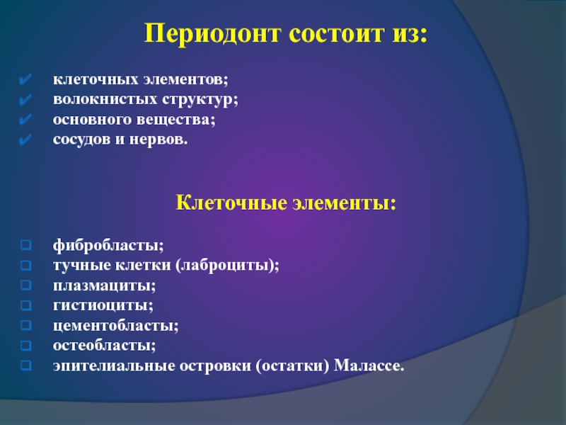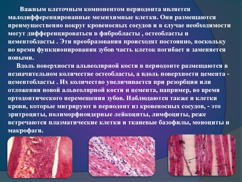 Слайд 9 Важным клеточным компонентом периодонта является малодифференцированные