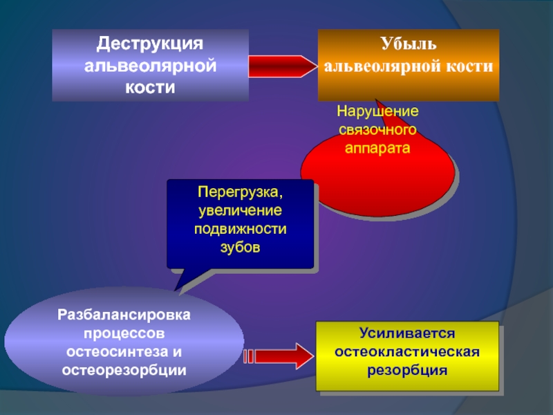 После разрушения кортикальной пластинки кости межзубной перегородки воспалительно-резорбтивные явления распространяются
