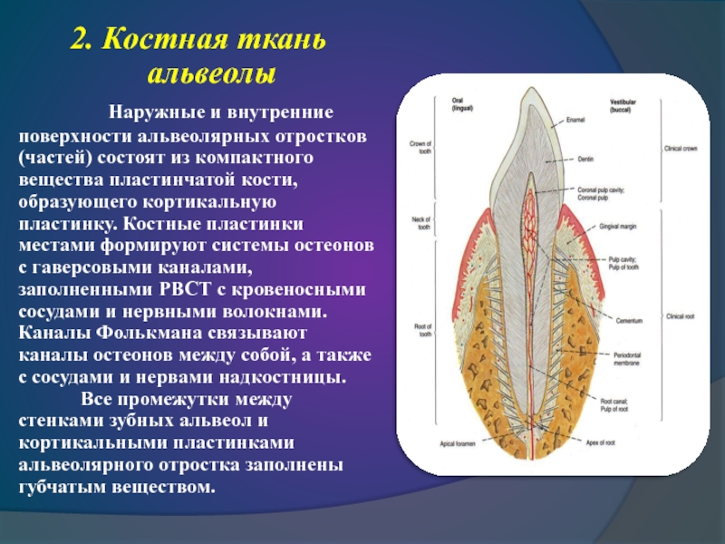 Все промежутки между стенками зубных альвеол и кортикальными пластинками альвеолярного отростка заполнены губчатым веществом.