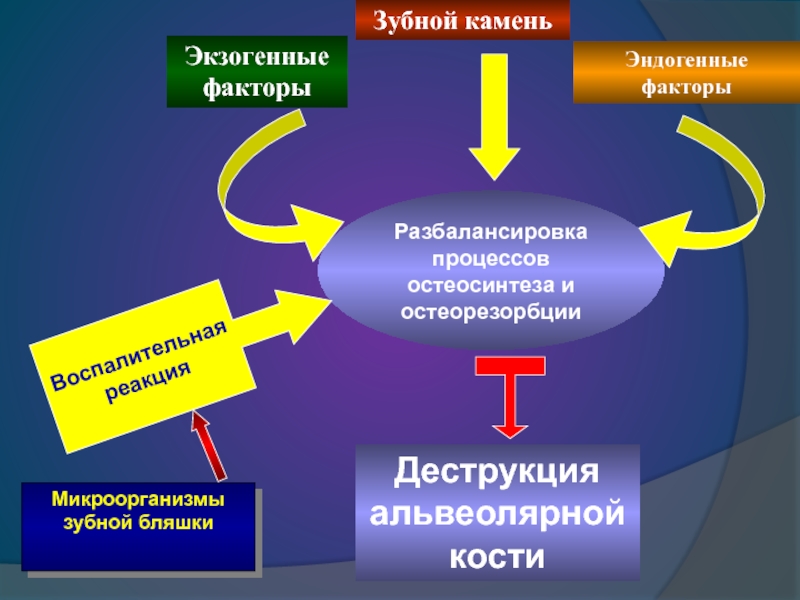 Развитие пародонтита как болезни - есть результат взаимодействия продуктов жизнедеятельности микроорганизмов и механизма ответа макроорганизма.