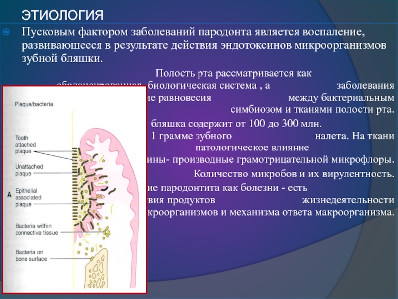 , а заболевания пародонта - как нарушение равновесия между бактериальным симбиозом и тканями полости рта.