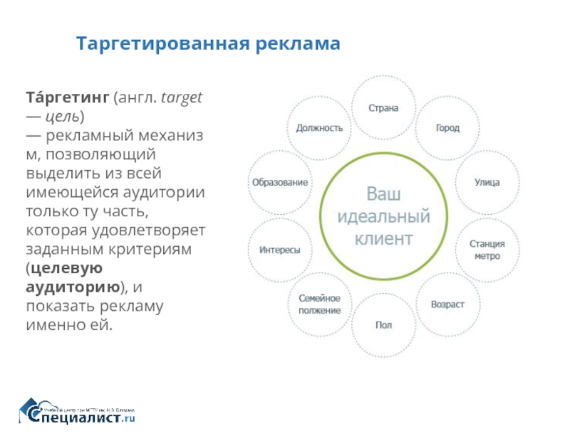 Та́ргетинг (англ. target — цель) — рекламный механизм, позволяющий выделить из всей имеющейся аудитории только