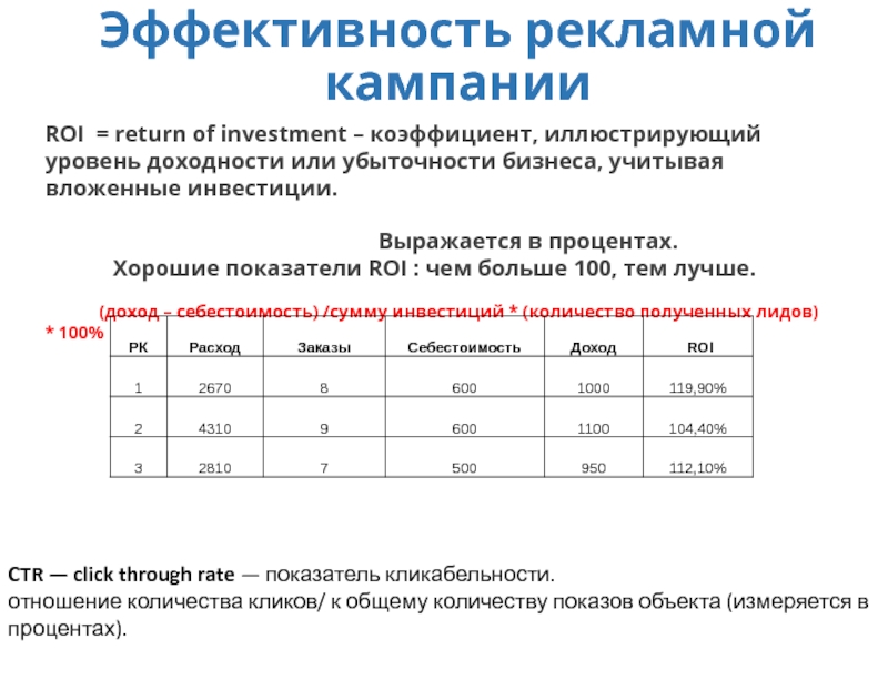 Хорошие показатели ROI : чем больше 100, тем лучше.