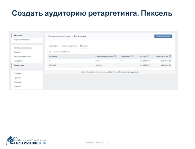Персональная сертификация Вконтакте: https://vk.com/target_certification