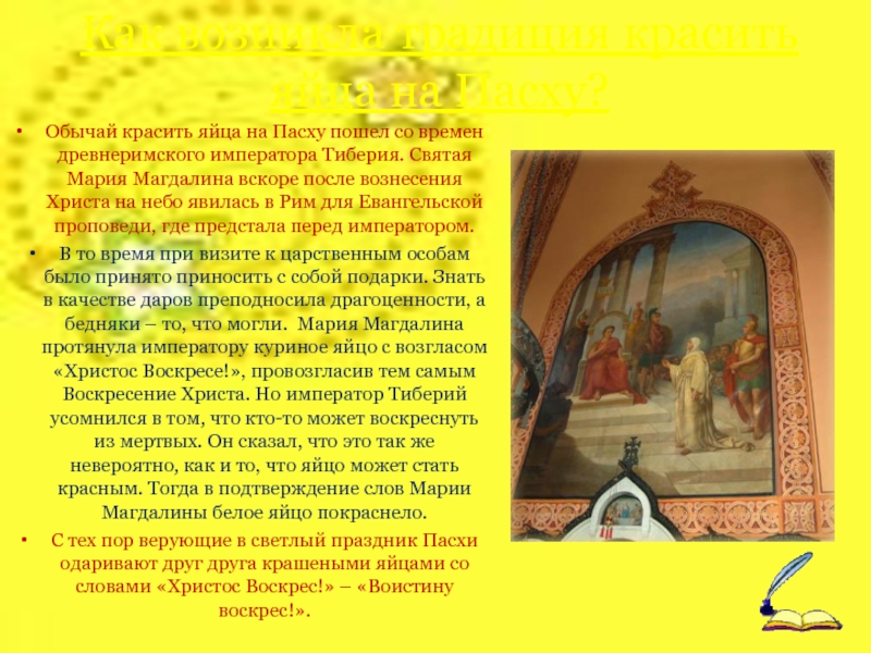 Пасху пошел со времен древнеримского императора Тиберия. Святая Мария Магдалина