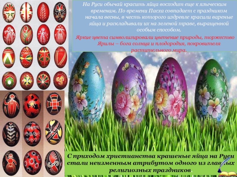 Слайд 12На Руси обычай красить яйца восходит еще к языческим временам.