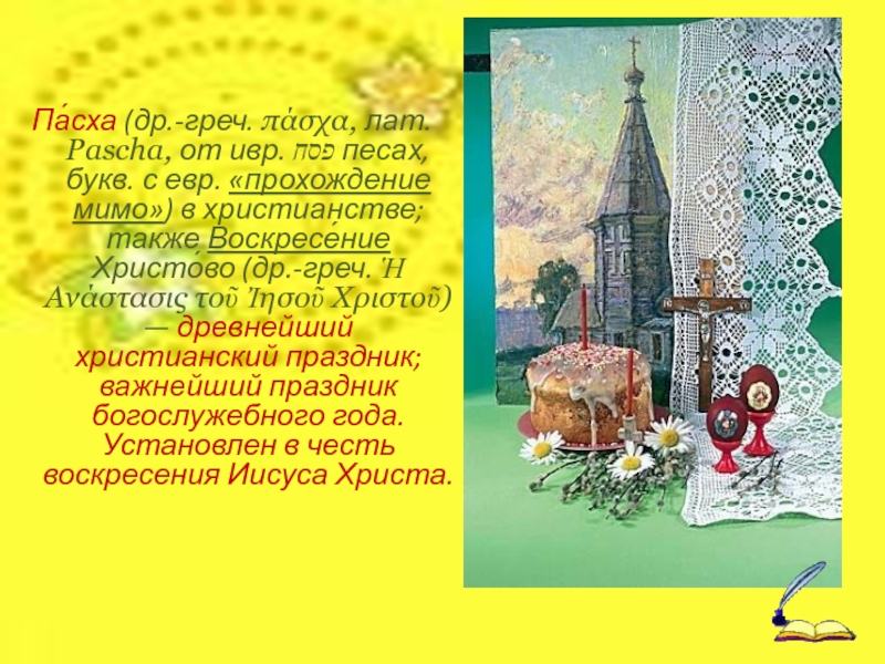 Слайд 5Па́сха (др.-греч. πάσχα, лат. Pascha, от ивр. פסח песах, букв.