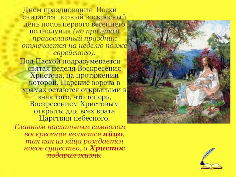 Слайд 6Днем празднования Пасхи считается первый воскресный день после первого весеннего