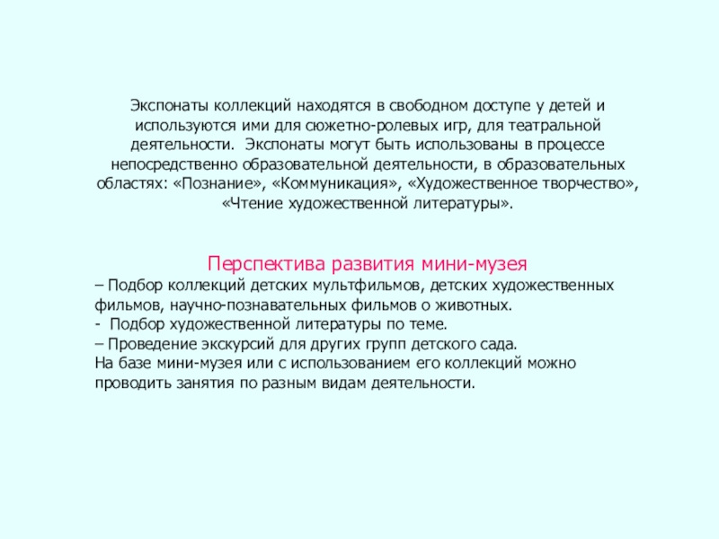 Слайд 6Экспонаты коллекций находятся в свободном доступе у детей и используются
