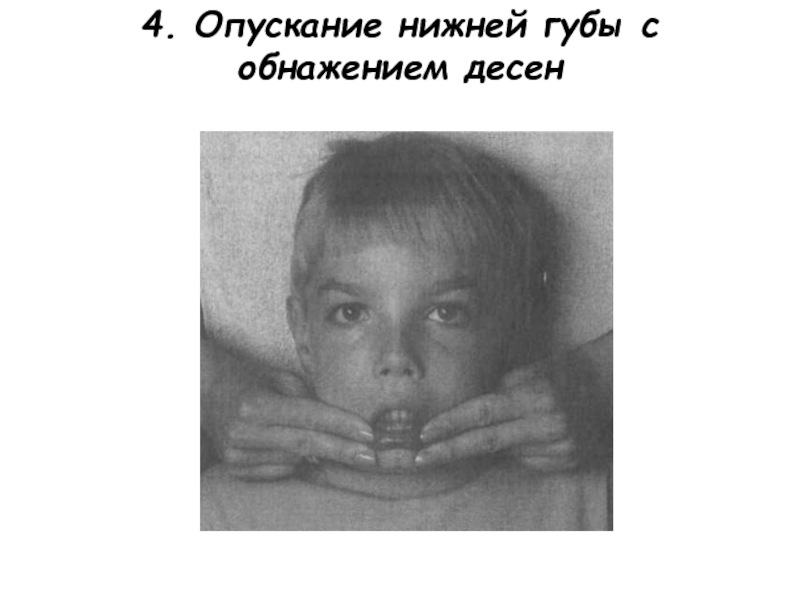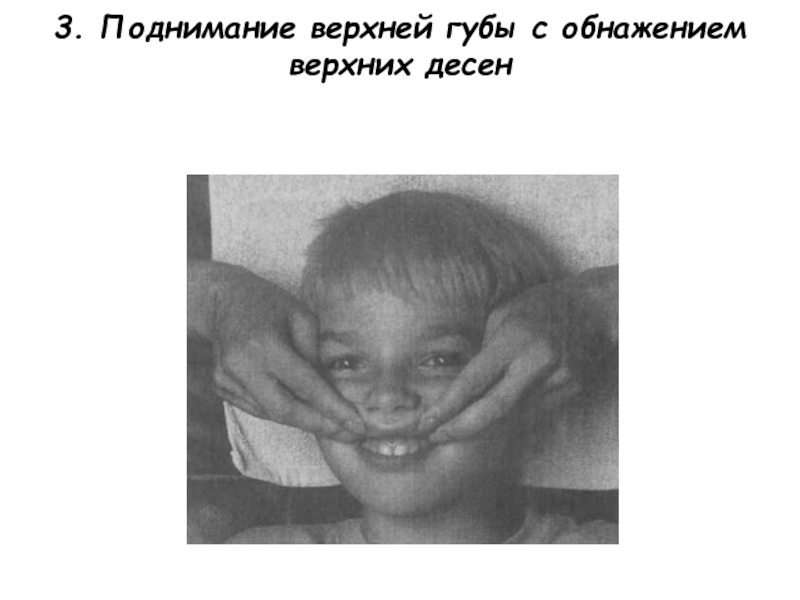 Слайд 63. Поднимание верхней губы с обнажением верхних десен