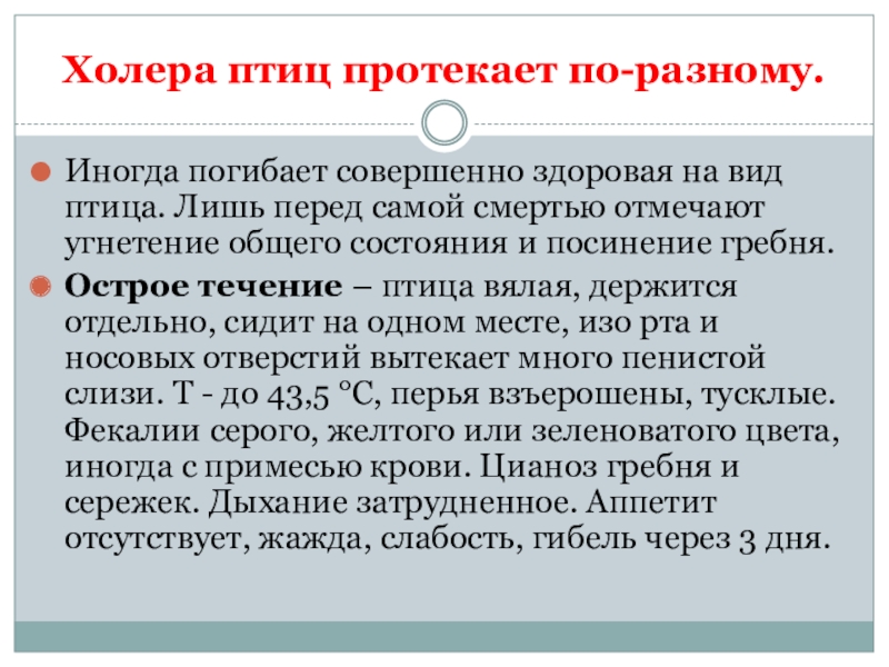 птица. Лишь перед самой смертью отмечают угнетение общего состояния и