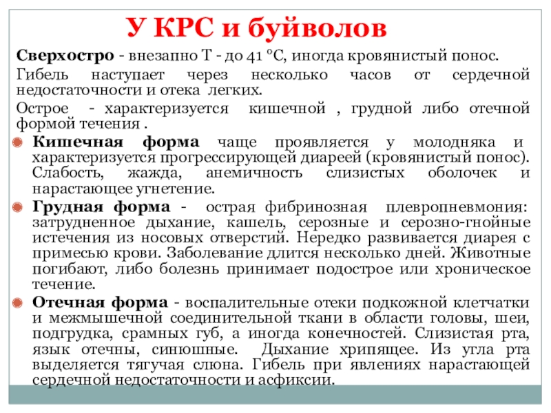 Острое - характеризуется кишечной , грудной либо отечной формой течения .