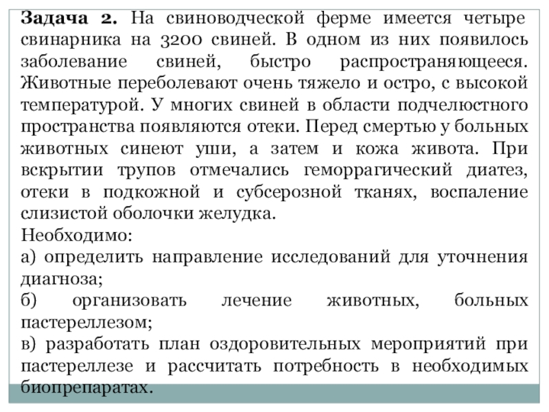 Слайд 46Задача 2. На свиноводческой ферме имеется четыре свинарника на 3200