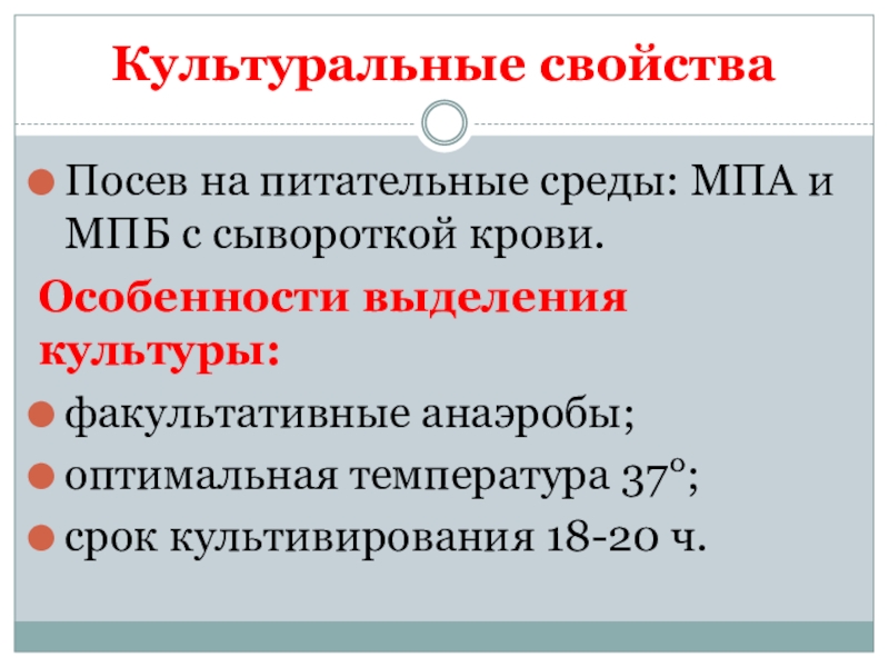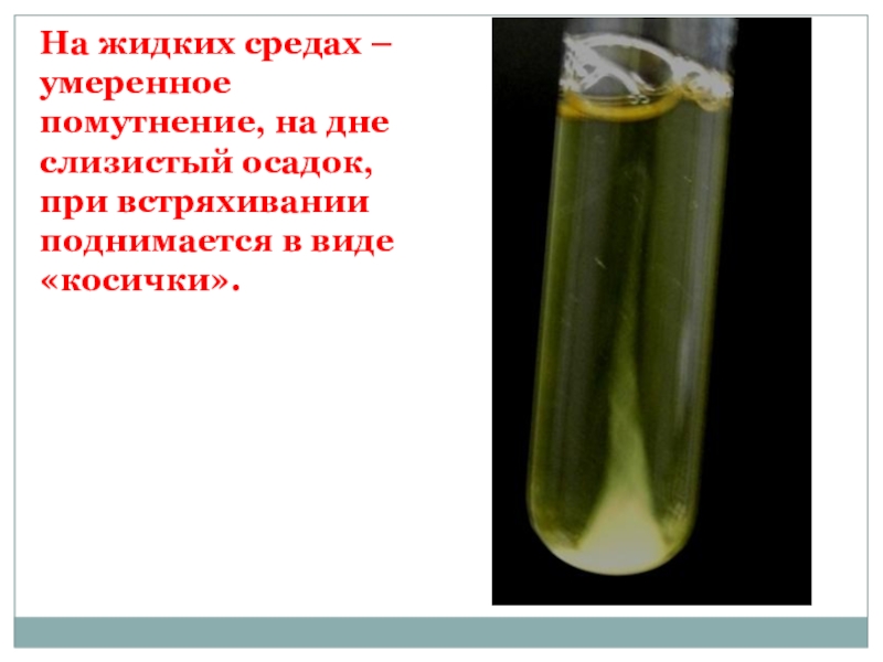 Слайд 10На жидких средах – умеренное помутнение, на дне слизистый осадок,