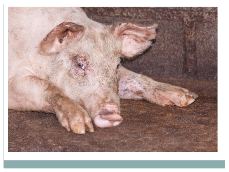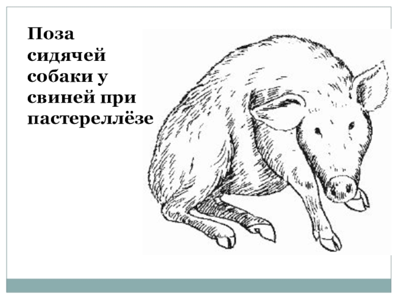 Слайд 21Поза сидячей собаки у свиней при пастереллёзе