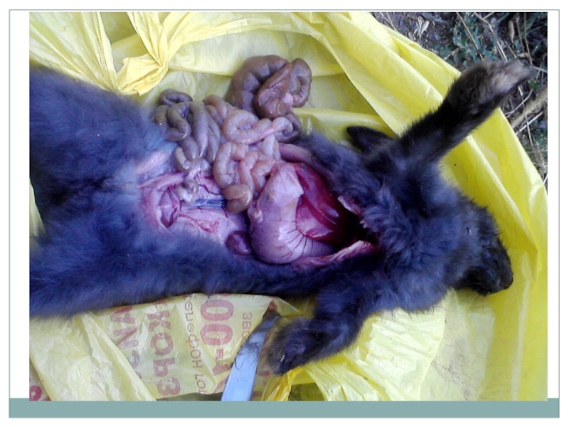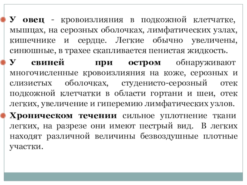 Слайд 30У овец - кровоизлияния в подкожной клетчатке, мышцах, на серозных