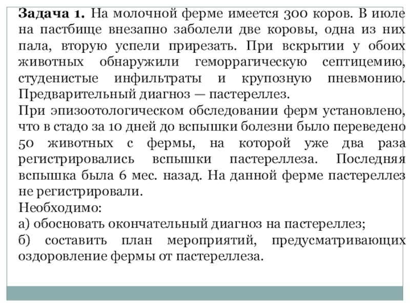 Слайд 45Задача 1. На молочной ферме имеется 300 коров. В июле