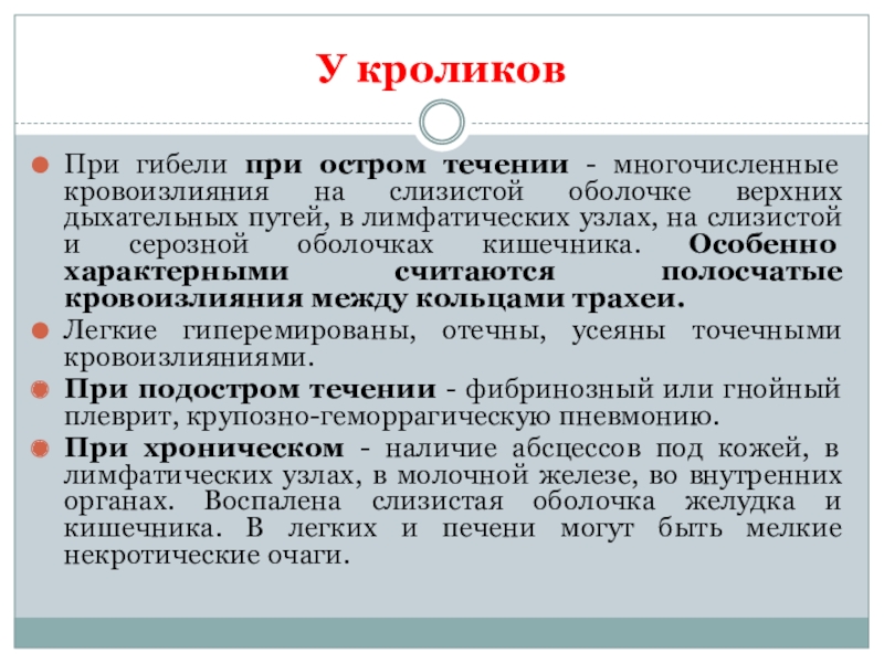 При сверхостром течении пастереллёза изменения в трупах обычно отсутствуют.