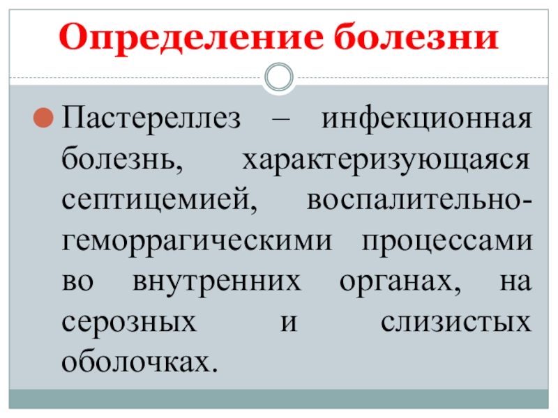 Пастереллез – инфекционная болезнь, характеризующаяся септицемией, воспалительно-геморрагическими процессами