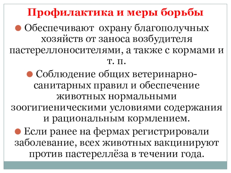 Если ранее на фермах регистрировали заболевание, всех животных вакцинируют против пастереллёза в течении года.