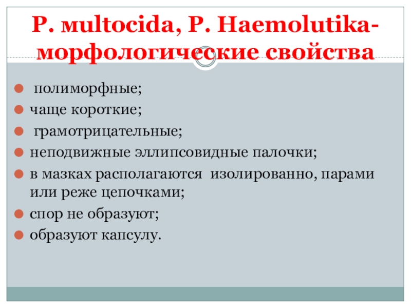 Слайд 5P. мultocida, Р. Haemolutika- морфологические свойства