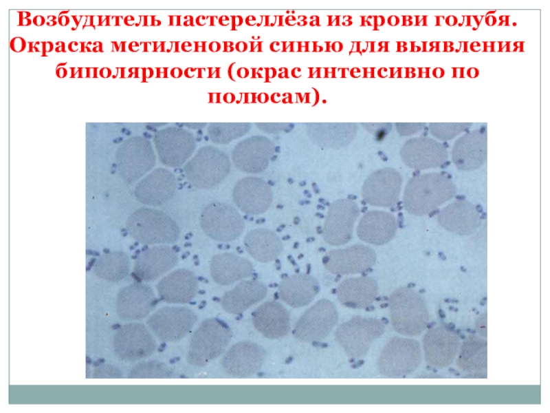 Слайд 6Возбудитель пастереллёза из крови голубя. Окраска метиленовой синью для выявления