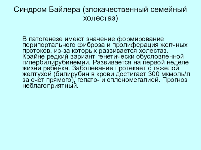 Слайд 40Синдром Байлера (злокачественный семейный холестаз)