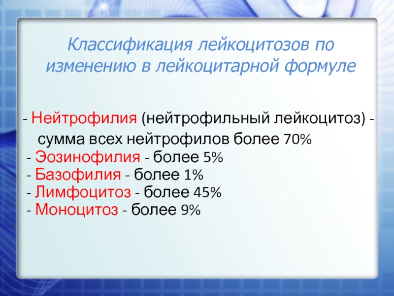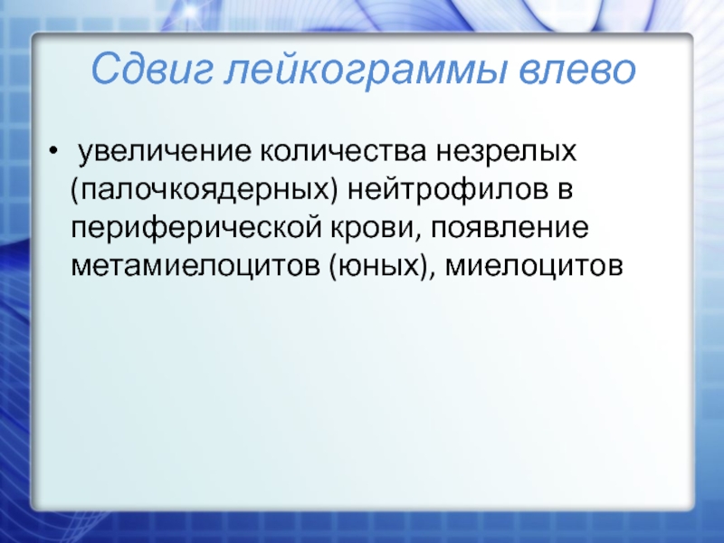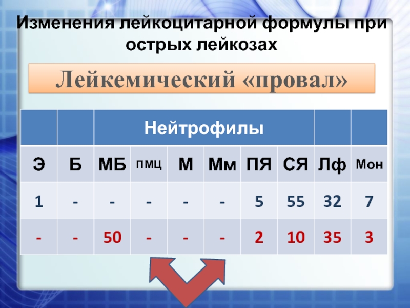 Слайд 62Изменения лейкоцитарной формулы при острых лейкозах