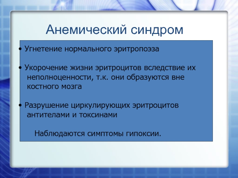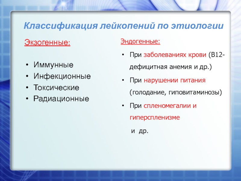 крови развивается панцитопения – уменьшение числа зрелых клеток (нейтропения, лимфопения, анемия, тромбоцитопения)