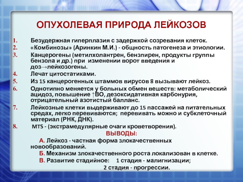 Слайд 66ОСНОВНЫЕ НЕПОСРЕДСТВЕННЫЕ ПРИЧИНЫ СМЕРТИ ОТ ЛЕЙКОЗОВ