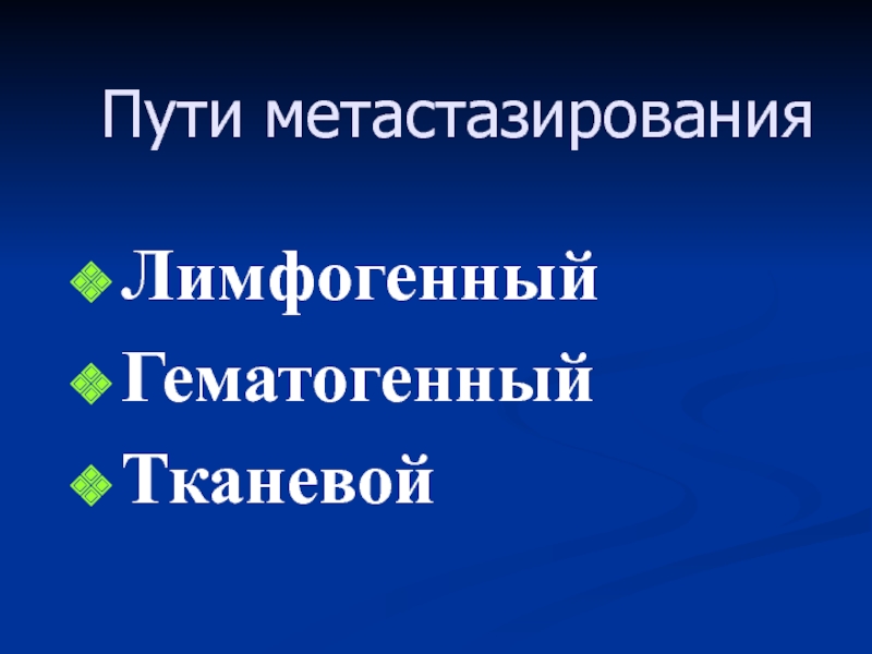 Пути метастазированияЛимфогенныйГематогенныйТканевой