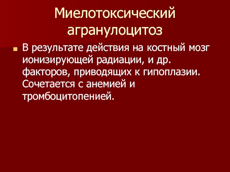 Как сопутствующее при миелотоксической форме агранулоцитоза