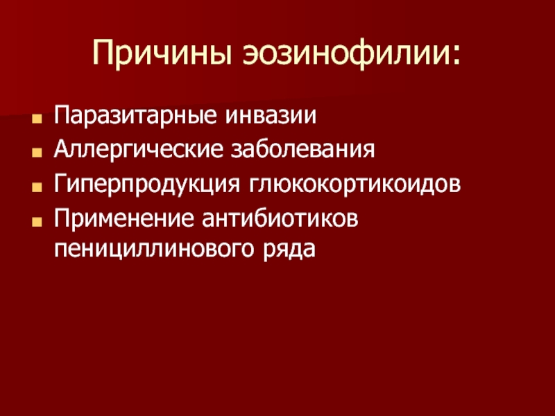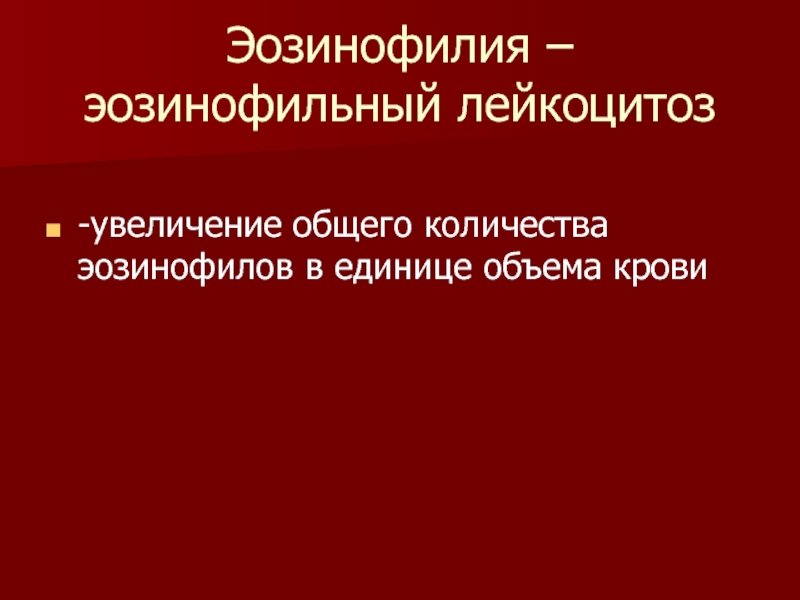Слайд 41Эозинофилия – эозинофильный лейкоцитоз