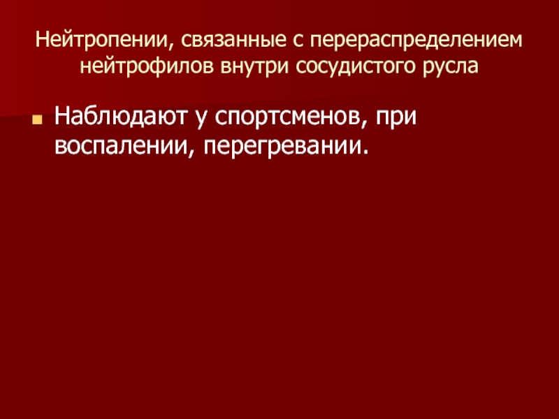 Слайд 15Нейтропении, связанные с перераспределением нейтрофилов внутри сосудистого русла