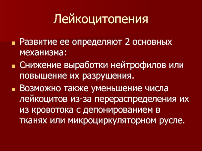 Возможно также уменьшение числа лейкоцитов из-за перераспределения их из