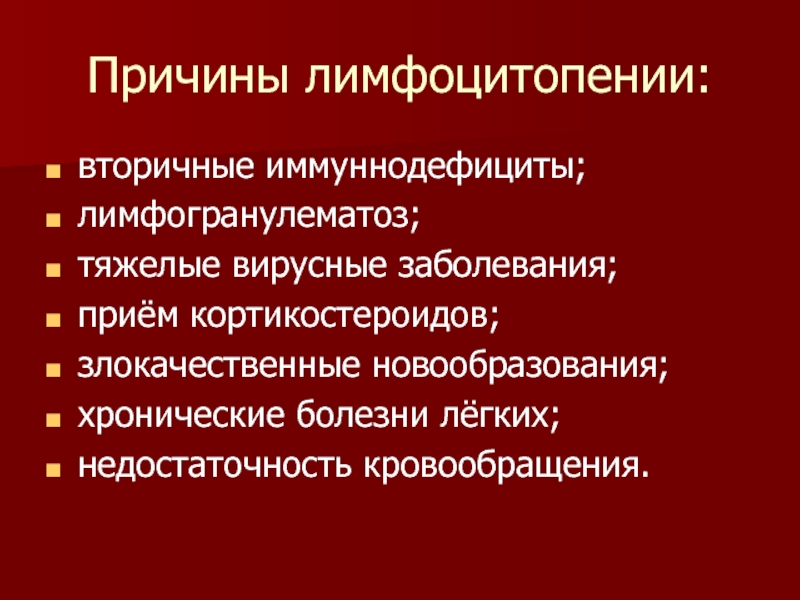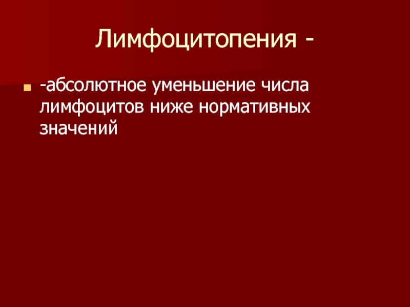 -абсолютное уменьшение числа лимфоцитов ниже нормативных значений