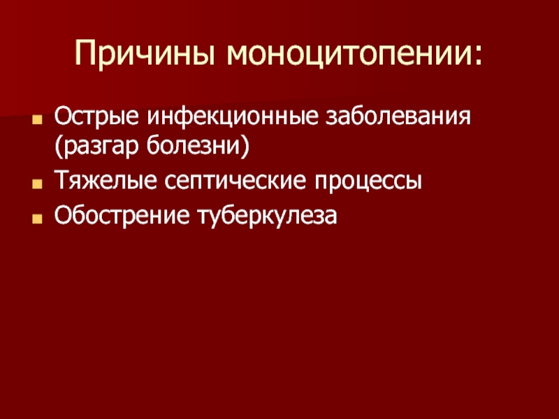 моноцитарного рядов при нарушении их образования, созревания или разрушении в