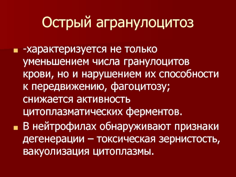 -характеризуется не только уменьшением числа гранулоцитов крови, но и