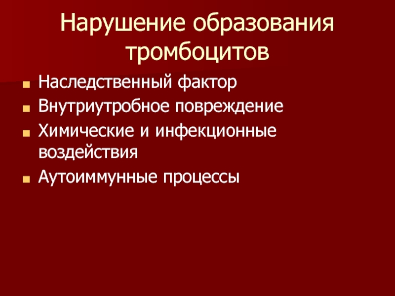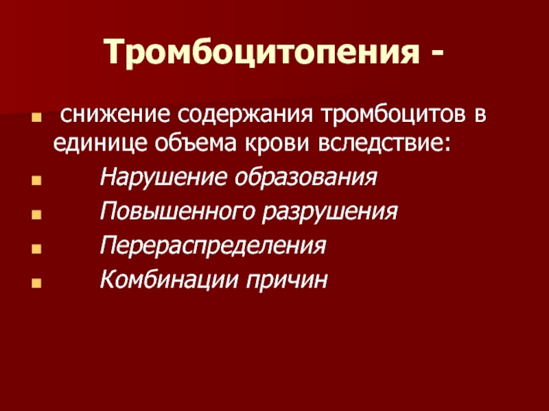 снижение содержания тромбоцитов в единице объема крови вследствие: