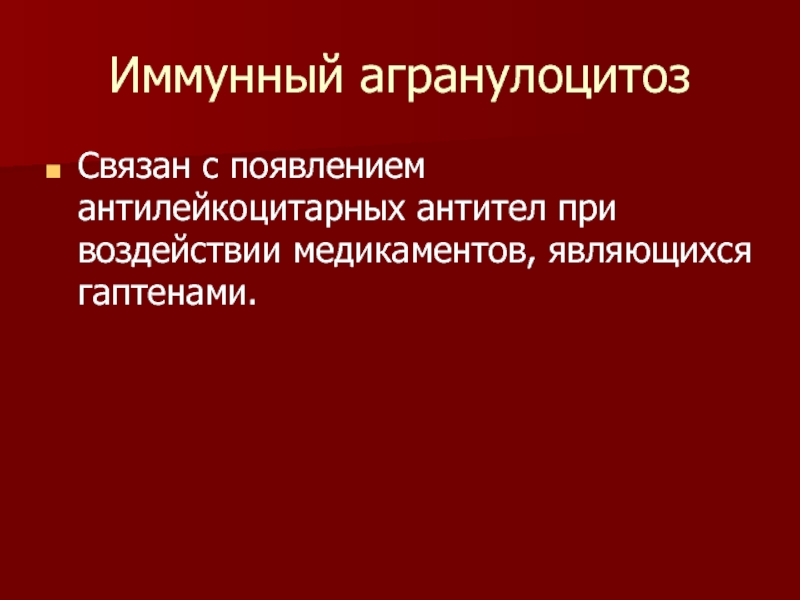 Связан с появлением антилейкоцитарных антител при воздействии медикаментов, являющихся