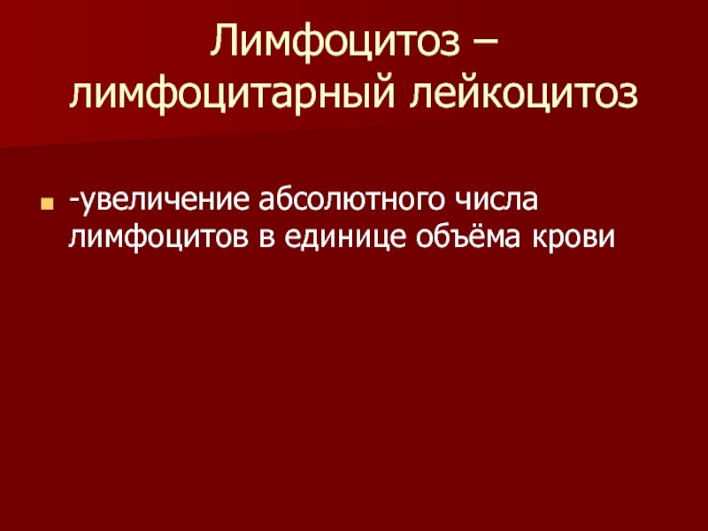 -увеличение абсолютного числа лимфоцитов в единице объёма
