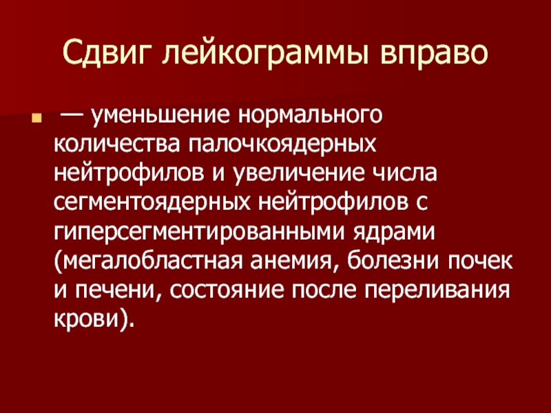 — уменьшение нормального количества палочкоядерных нейтрофилов и увеличение