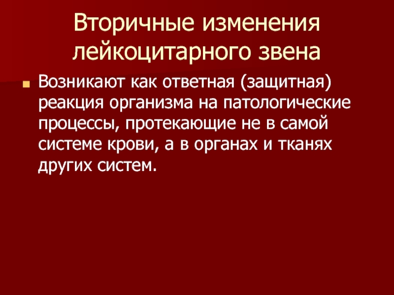 Слайд 4Вторичные изменения лейкоцитарного звена