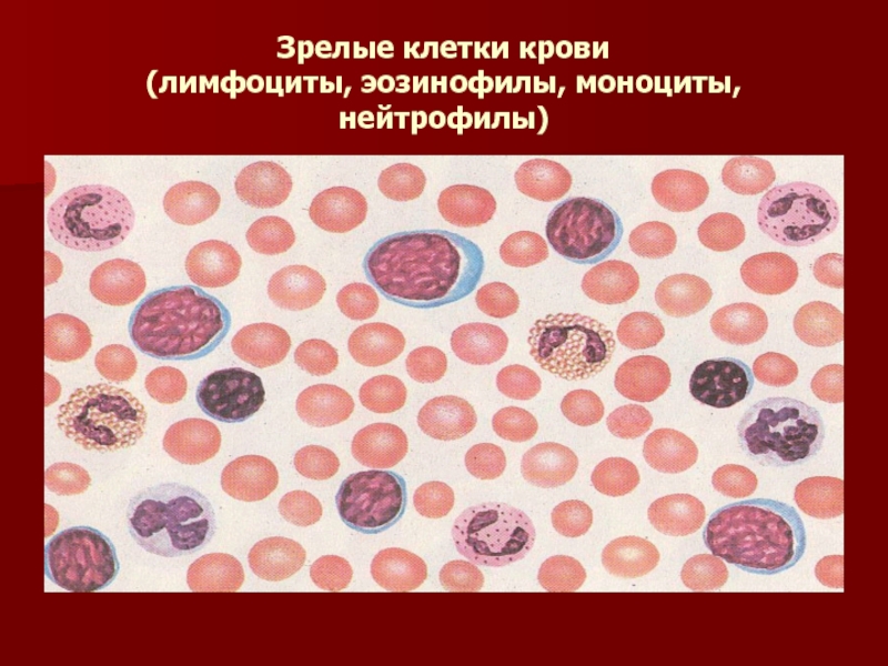 (лимфоциты, эозинофилы, моноциты, нейтрофилы)