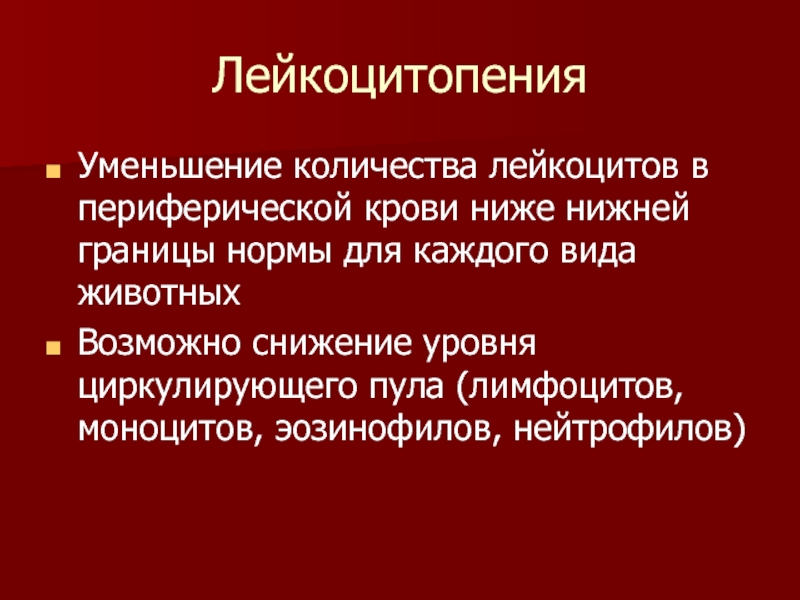 Уменьшение количества лейкоцитов в периферической крови ниже нижней границы нормы