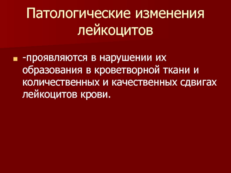 Слайд 6Патологические изменения лейкоцитов могут сопровождаться