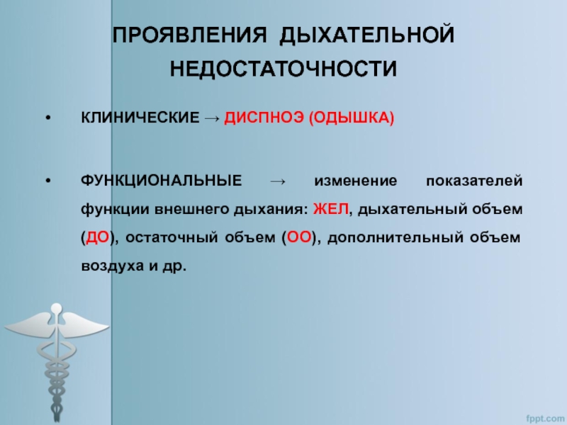 Слайд 19ПРОЯВЛЕНИЯ ДЫХАТЕЛЬНОЙ НЕДОСТАТОЧНОСТИ