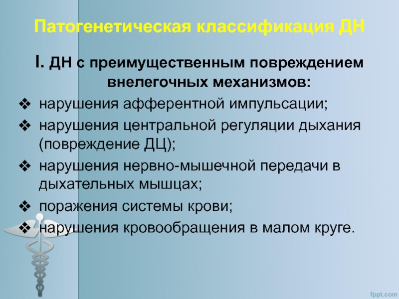 I. ДН с преимущественным повреждением внелегочных механизмов: