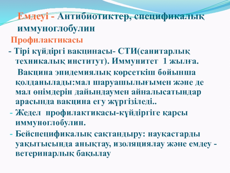 Слайд 67Емдеуі - Антибиотиктер, спецификалық иммуноглобулин