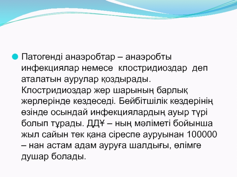 Слайд 3Патогенді анаэробтар – анаэробты инфекциялар немесе клостридиоздар деп аталатын аурулар